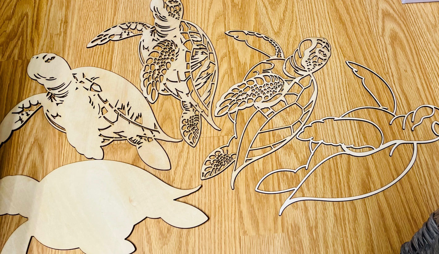Sea Turtle (5 Layers) unpainted. Size is approximately 7.5 inches (length) by 11.5 inches (width). This can be painted any color you like and glued together.