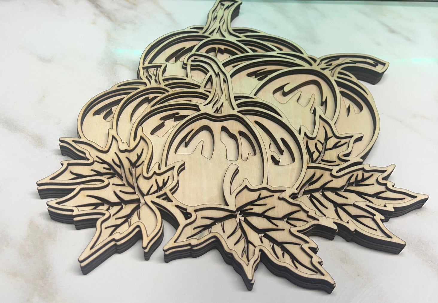 Multi Pumpkins (5 Layers) unpainted. Size is approximately 10 inches (length) by 10 inches (width). This can be painted any color you like and glued together.